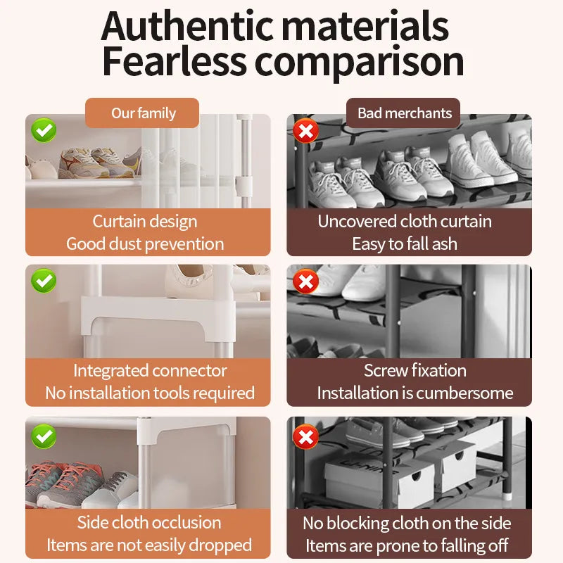 ✔️ Dustproof Curtain Cover – Keeps your shoes clean and hidden from view.