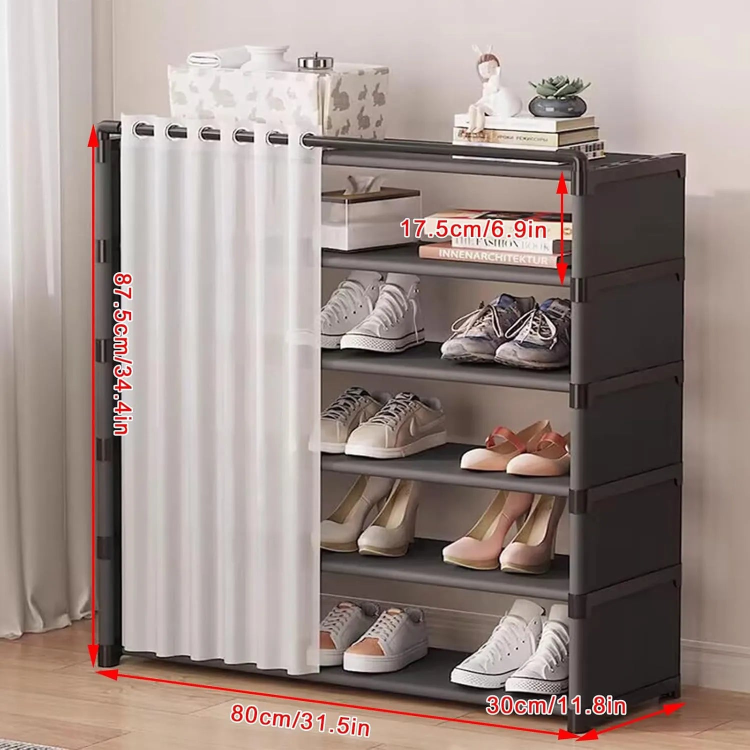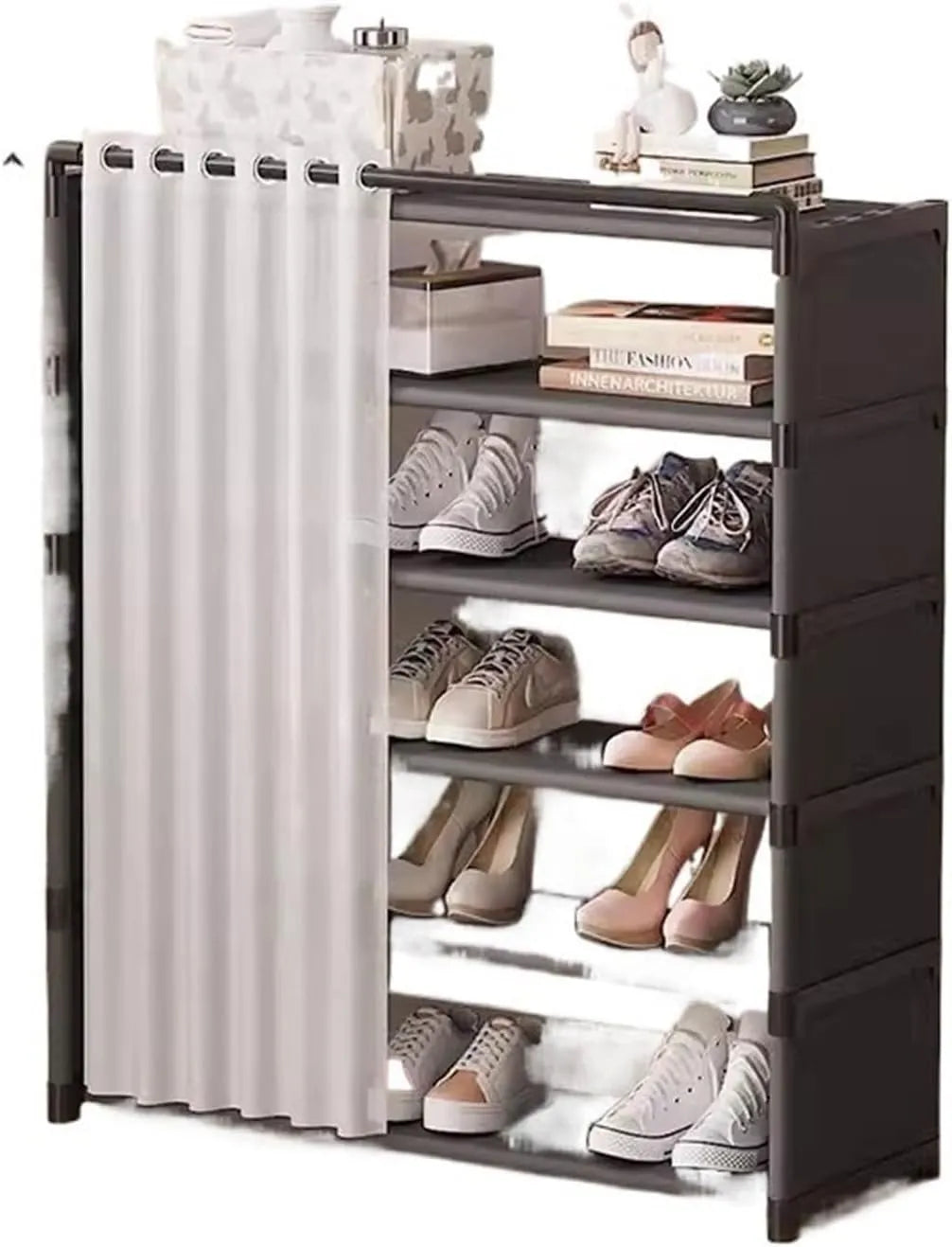 Customizable 5-Layer Shoe Rack Stand with Dustproof Curtain – Space-Saving, Sturdy & Easy to Install