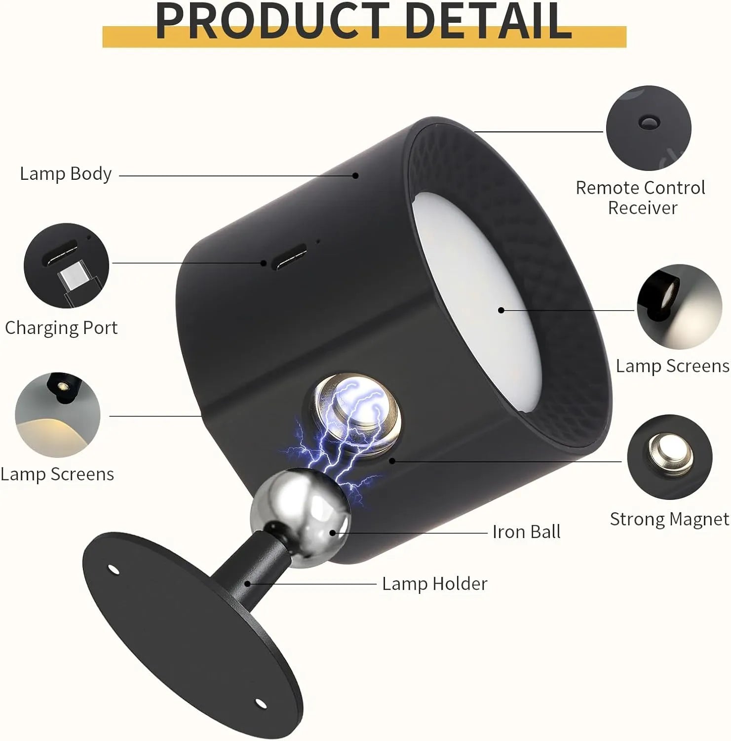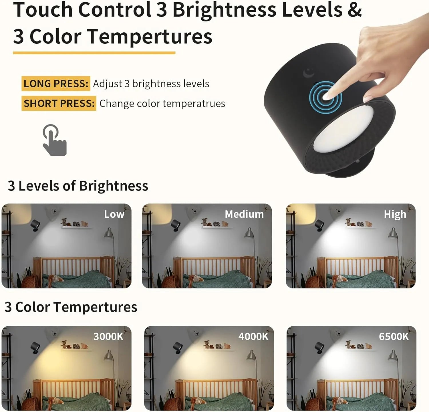 Magnetic LED Wall Lamp - 360° Rotatable Touch Control Night Light for Bedroom & Living Room