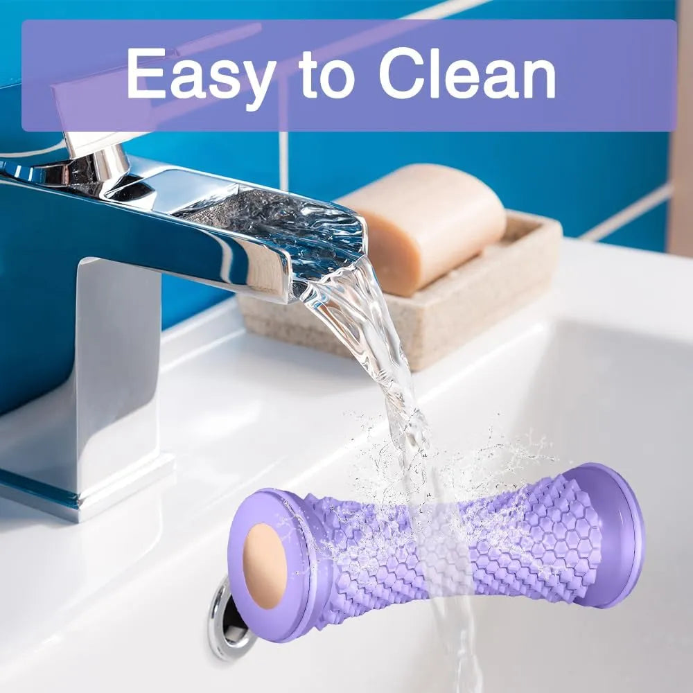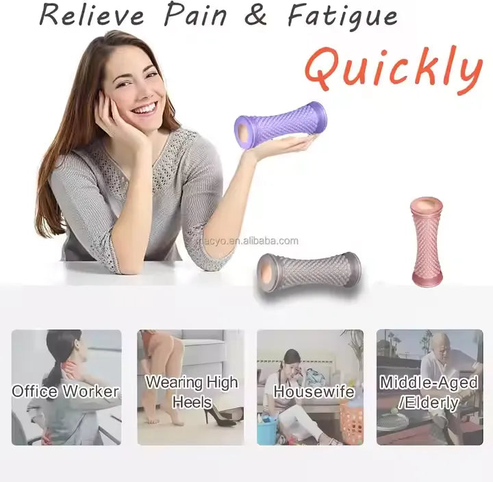 Are you struggling with plantar fasciitis or sore feet after workouts? Our ergonomic Foot Roller Massager is designed to provide deep tissue relief and enhance your overall foot health. Crafted from high-quality TPR and PVC, this premium foot roller is ergonomically built to target pressure points, ease muscle tension, and bring lasting relief—all in one compact, travel-friendly tool, this versatile massage tool helps alleviate tension, promote blood circulation, and assist in muscle recovery, making it an essential addition to your fitness routine.