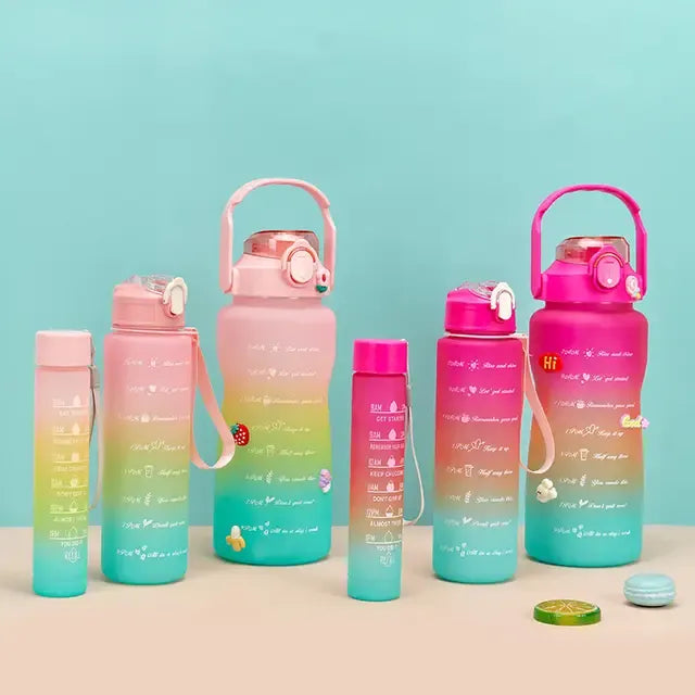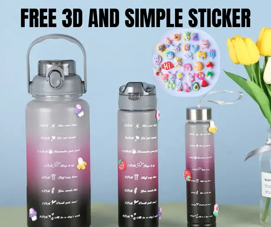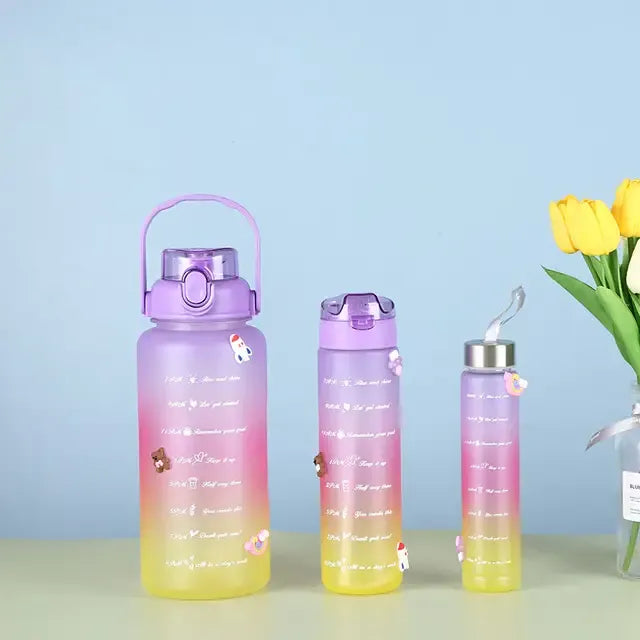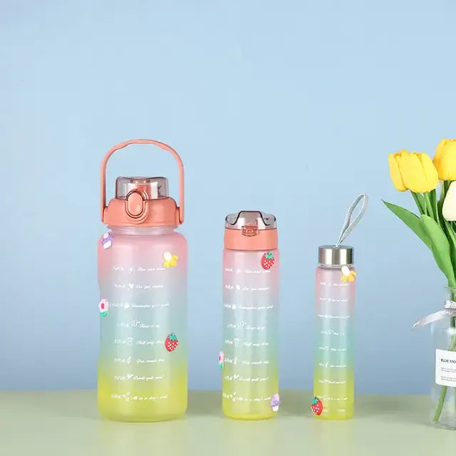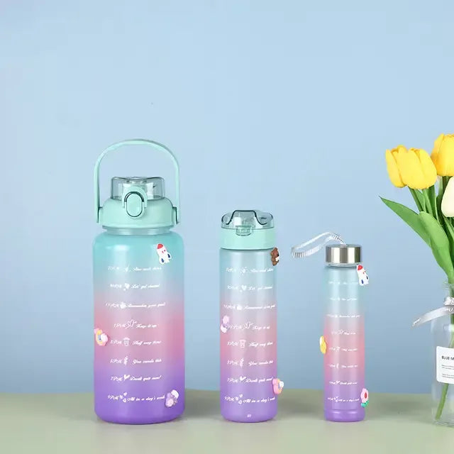 The set includes three bottle sizes: 2000ml, 900ml, and 300ml. This variety makes it ideal for different hydration needs throughout the day.