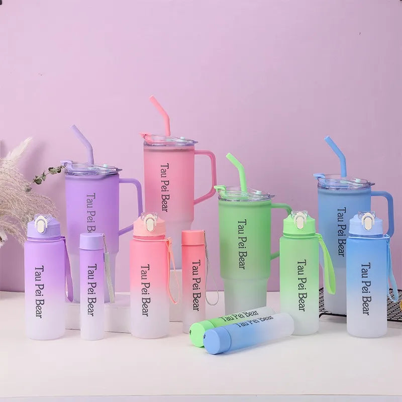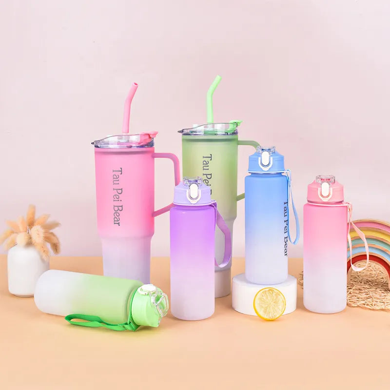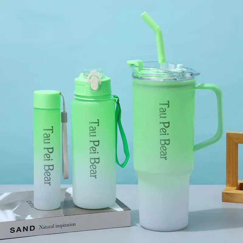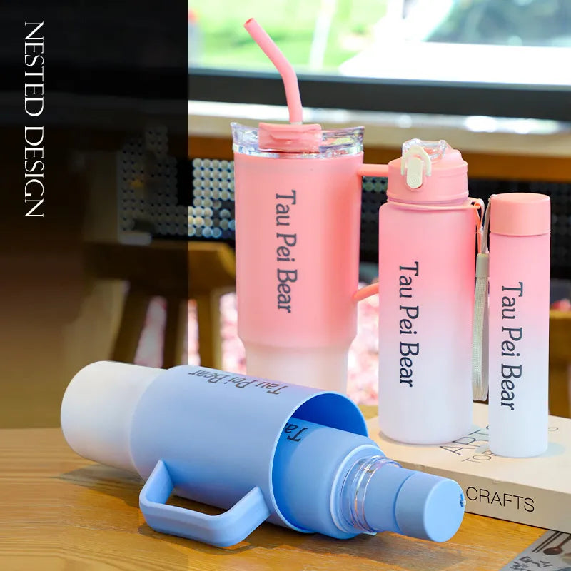 Water Bottle with Straw – 3 Pcs Gradient Tumbler Set | BPA-Free Portable Drinkware for Travel, Sports & Office