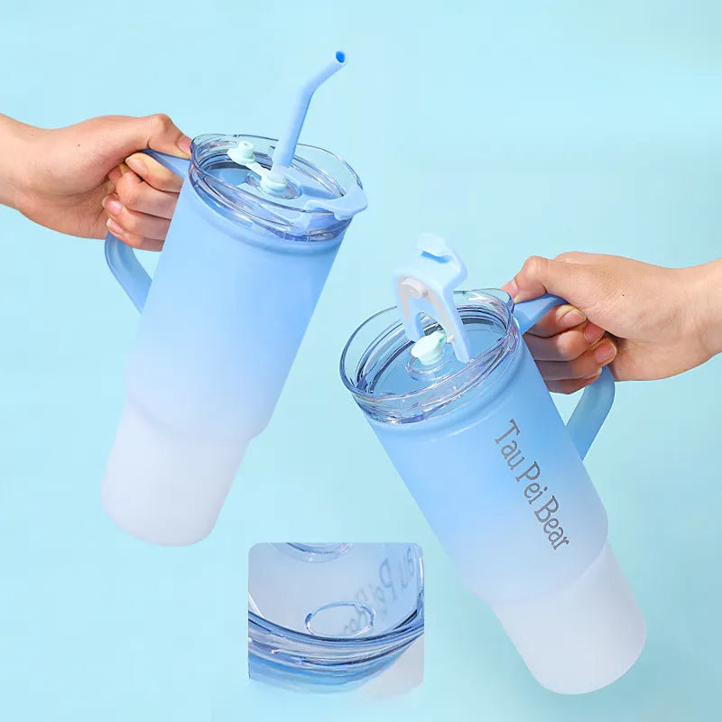 Made from high-quality BPA-free plastic, these gradient color tumblers feature ergonomic handles and are perfect for travel, outdoor sports, gym sessions, and more. Leak-proof design ensures no spills, making them ideal for car rides, camping, and school.