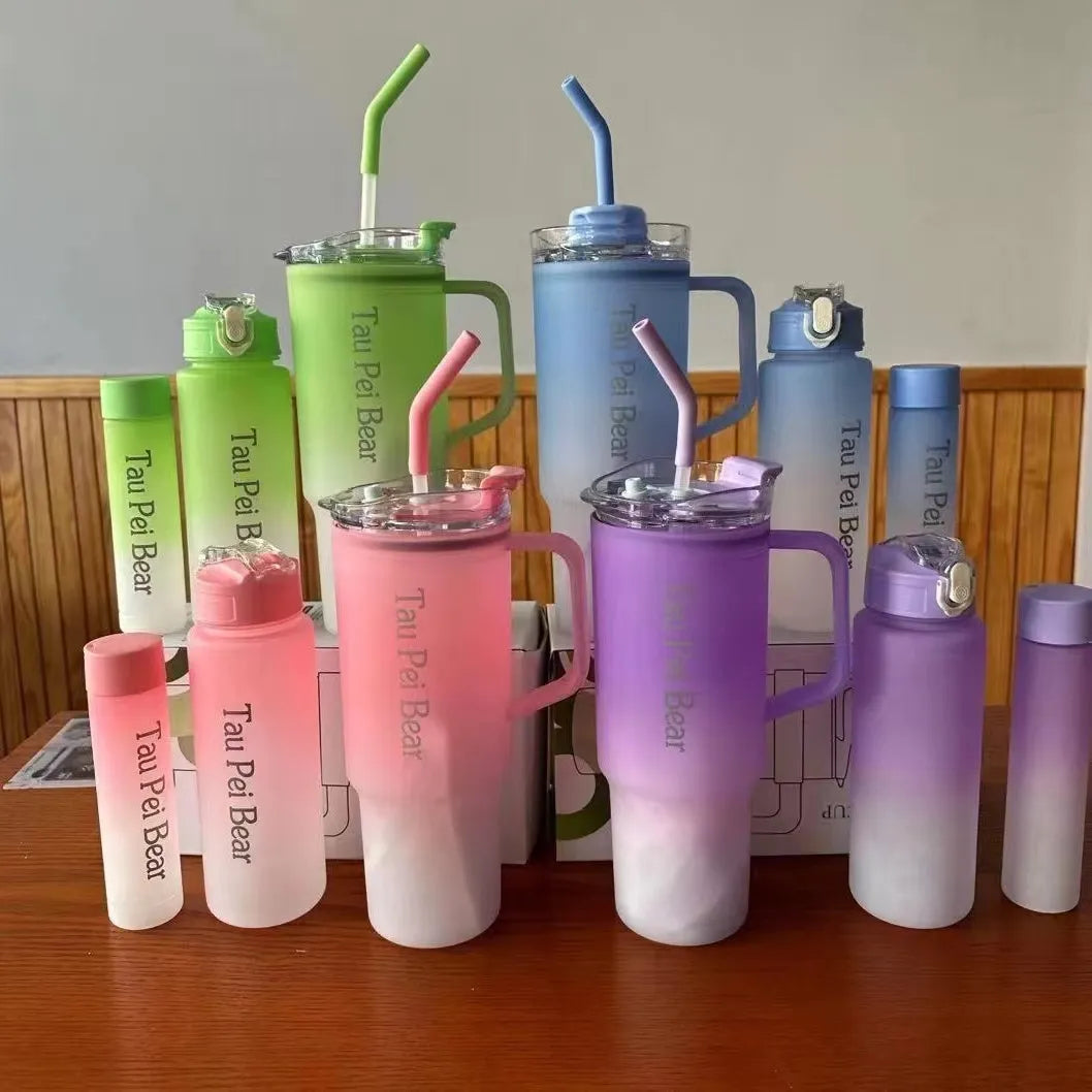 Water Bottle with Straw – 3 Pcs Gradient Tumbler Set | BPA-Free Portable Drinkware for Travel, Sports & Office